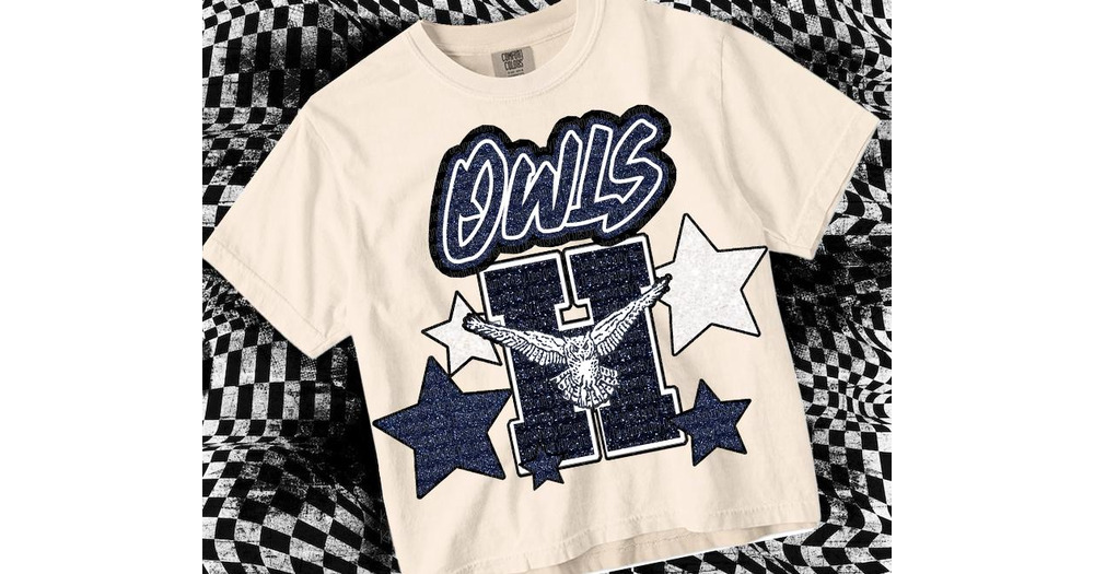 Retro Glitter Stars Mascot- OWLS PNG - School Spirit - Blue Glitter