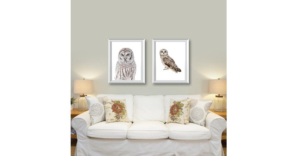Owl Art Prints - Watercolor Snow Owl Decor - Set of 2