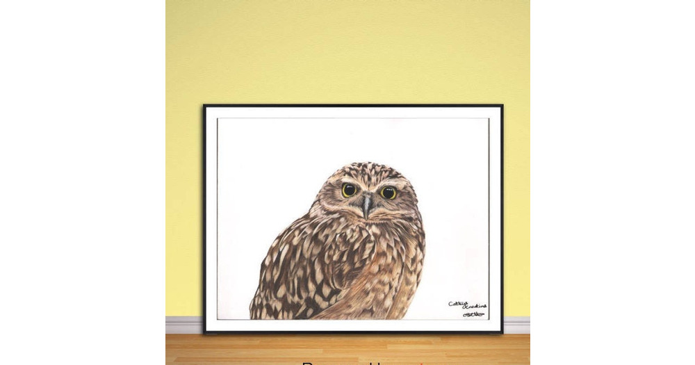 Owl Giclee fine art print, from hand drawn coloured pencil original,