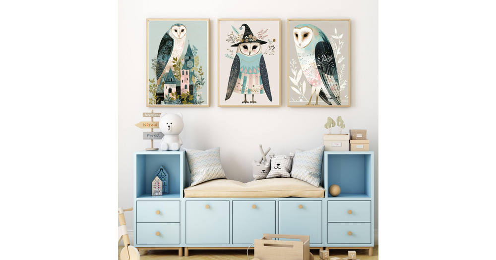 Owl Nursery Wall Art Set of 3, Woodland Animal Prints for Kids Room, Magical Barn Owl Posters, Digit