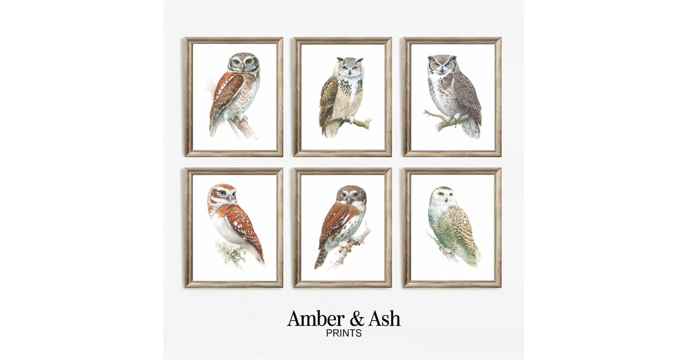 Vintage Owl Art Prints, Botanical Illustrations, Set of 10 (Digital Download)