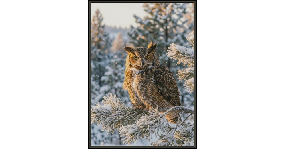 Winter Owl Wall Art, Great Horned Owl Print, Golden Hour Photography, Rustic Farmhouse Decor, Snowy