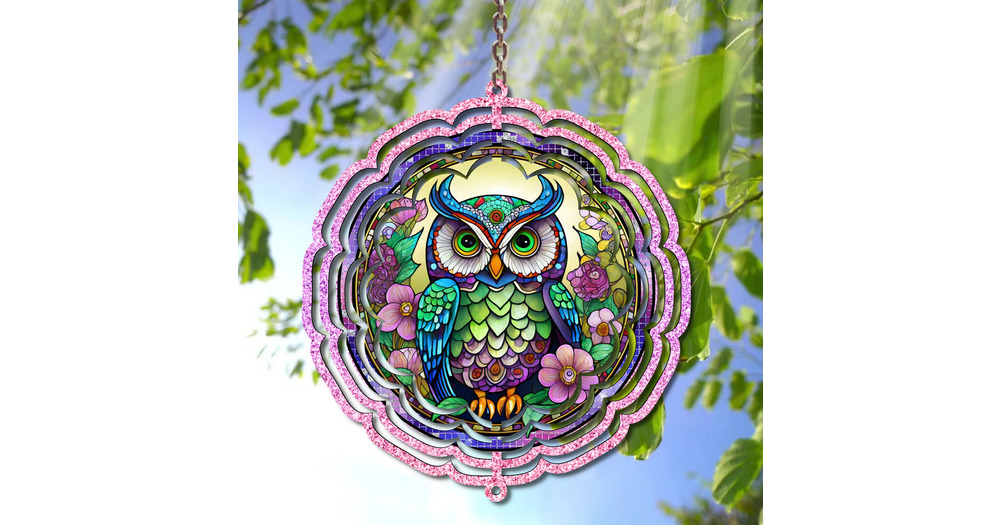 Owl Wind Spinner Sublimation Design - Stained Glass PNG for Personal and Commercial Use - Printable