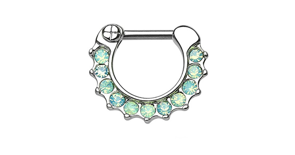 Pierced Owl Opalites Paved Surgical Steel Septum Clicker Ring 16g - Choose Clear, Green, or Pink Opa