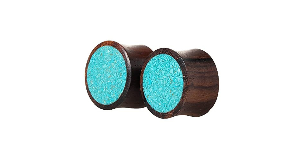 Pierced Owl Synthetic Crushed Turquoise Inlay Organic Wood Saddle Fit Plugs Ear Gauges (12mm (1/2&qu