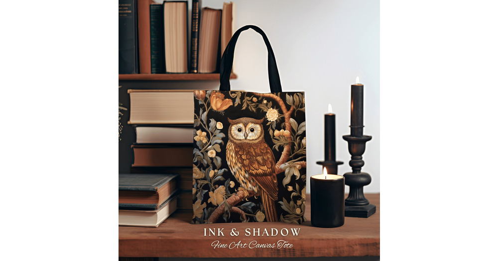 Bookish Owl Tote Bag | Whimsical William Morris Inspired Shoulderbag Aesthetic Gothic Tapestry Tote