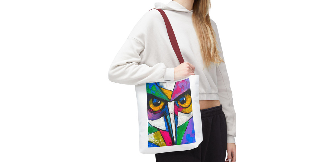 Colorful Abstract Owl Art Tote Bag | Bold Geometric Design | Artist Illustrated Carryall