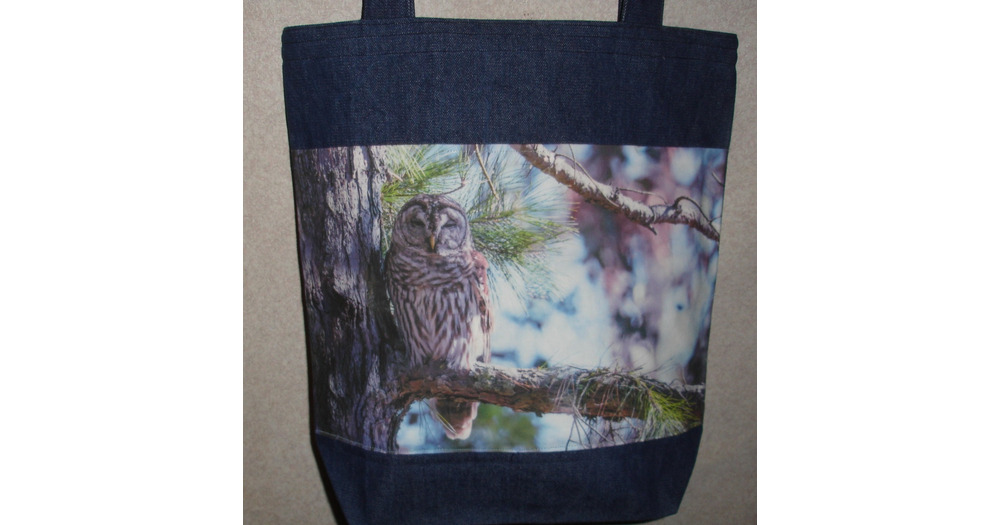 New Handmade Barred Owl Pine Tree Bird Original Photograph Photo Large Denim Tote Bag