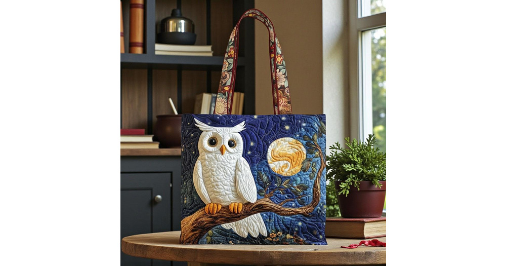 Cute Owl Tote Bag, White Owl Moon Night Tote, Nature Animal Art Handbag, Unique Owl Lover Gift, Boho