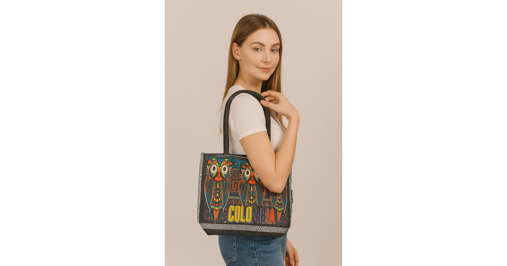 Handmade Colombian Canvas Tote Bag • Cultural Owl & Toucan Design
