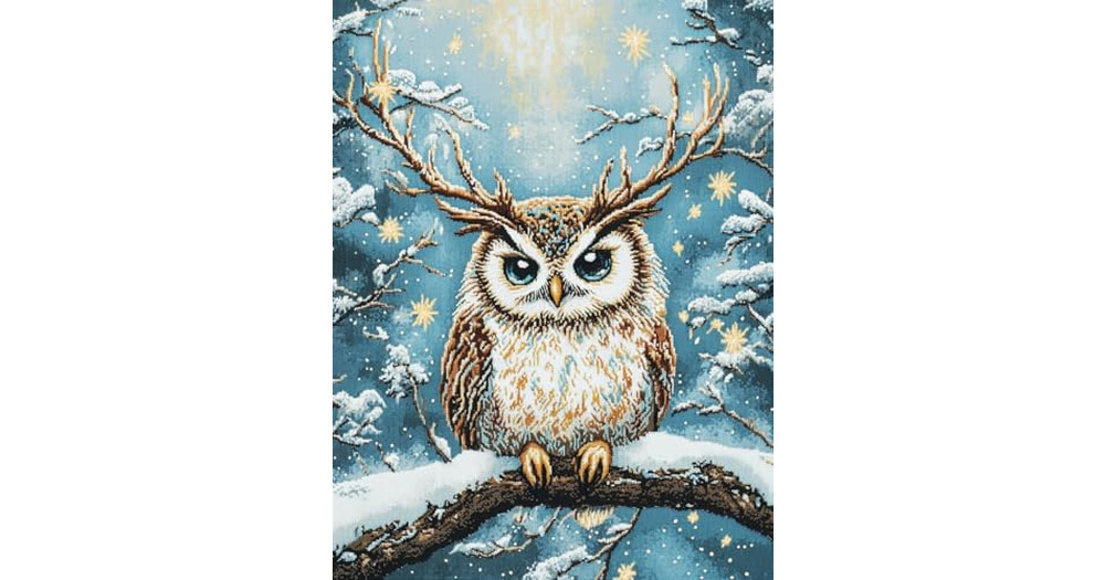 DIY Cross Stitch Kit for Beginners Owl with Antlers Whimsical Pastel Colors 11CT Embroidery Kit with