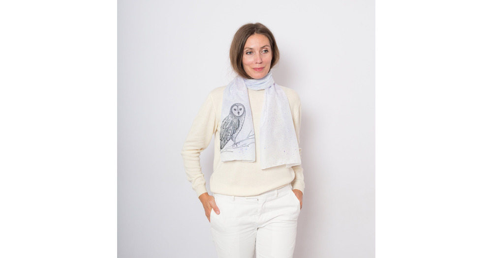 Owl Hand Painted Galaxy Silk Scarf Winter Bird Lover Scarf Owl Lover Gift 59X13