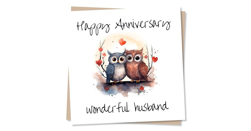 Nokular Happy Anniversary Card To Husband From Wife - Beautiful Owl Illustration - Made in UK