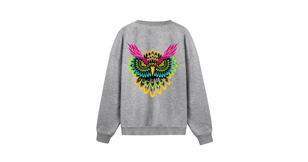 PTXYBYC Unisex Crewneck Sweatshirt Everyday Wear Easy Match Leisure Pullover Back Print Design Owl H