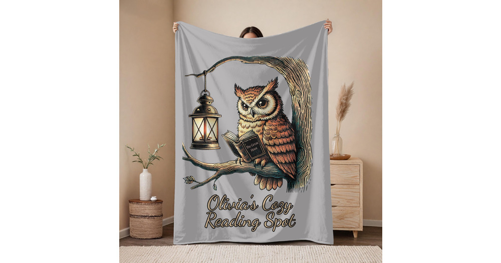 Personalized Book Owl Fleece Blanket: Literary Reading Gift