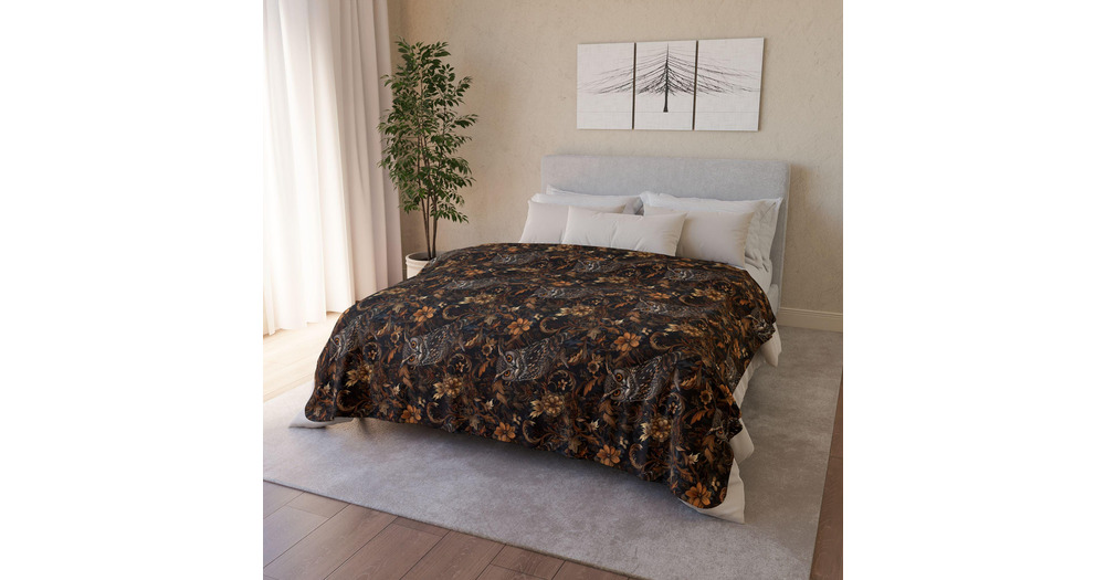 Medieval Floral Owl Fleece Sherpa Blanket - Medieval Decor - Cute Owl Decor - Throw Blanket or Bed C