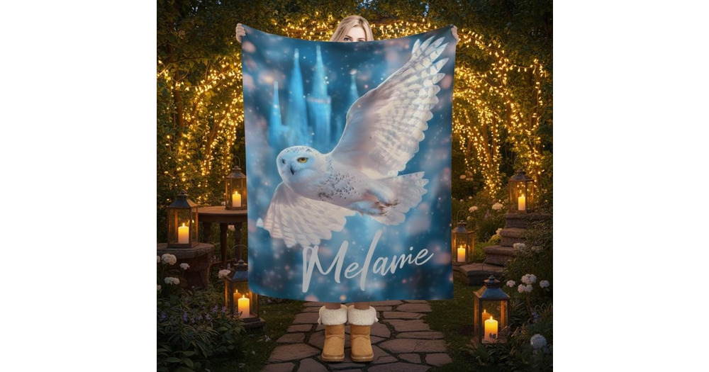 Personalized Wizarding Owl Blanket: Harry Potter Theme, Custom Flannel Fleece Name Throw