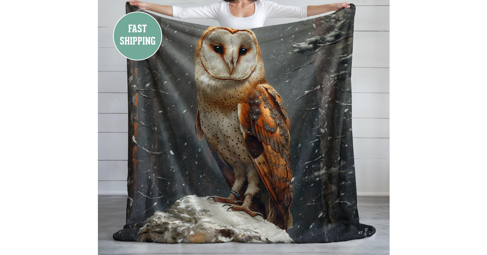 Beautiful Barn Owl Plush Fleece Blanket, Owl Portrait Blanket, Cozy Throw, Soft Bedding, Animal Love