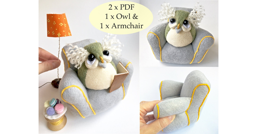 Miniature Felt Owl and Armchair PDF Bundle Sewing Pattern