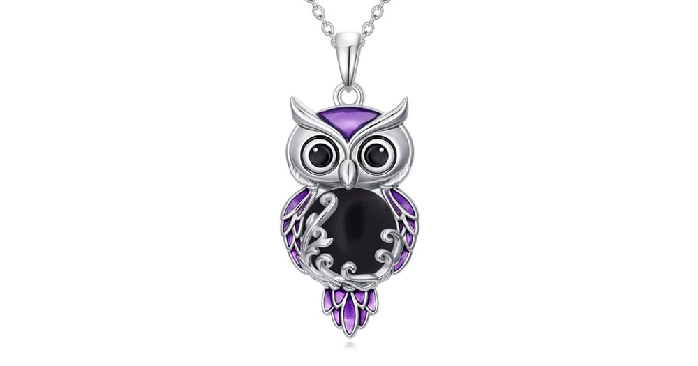POTOPYY Black Onyx Owl Necklace for Women 925 Sterling Silver Filigree Owl Jewelry Pendant Christmas