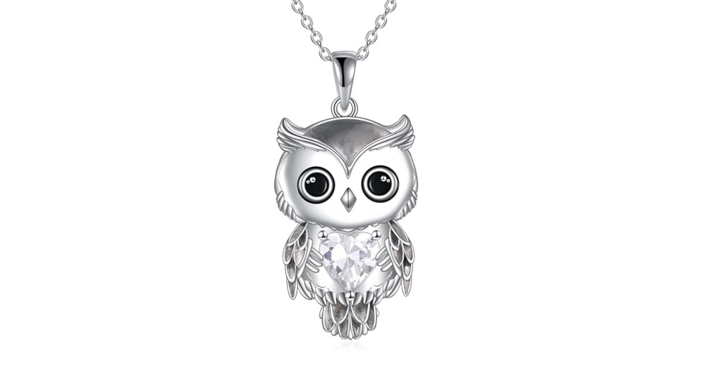 AINFQY Owl Necklace Jewelry Gifts for Women Sterling Silver April Birthstone Cubic Zirconia Owl Pend