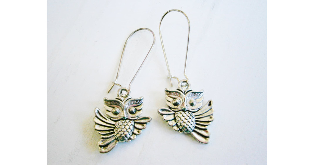 Antique Silver Owl On Stainless Steel Kidney Wire Earring Hooks/Dangle Earring/Boho Jewelry/Woodland