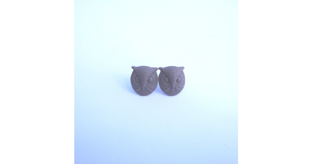 Brown Owl Earrings - Owls on Surgical Steel Studs, Post, Chocolate Brown, Gift under 10, Owl Jewelry