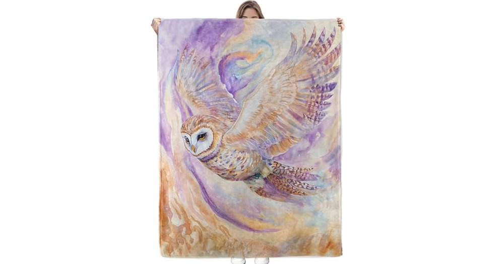 Bidesk Watercolor Owl Blanket Soft Cozy Flannel Throw Blanket, Warm Yet Lightweight Elegant Owls in