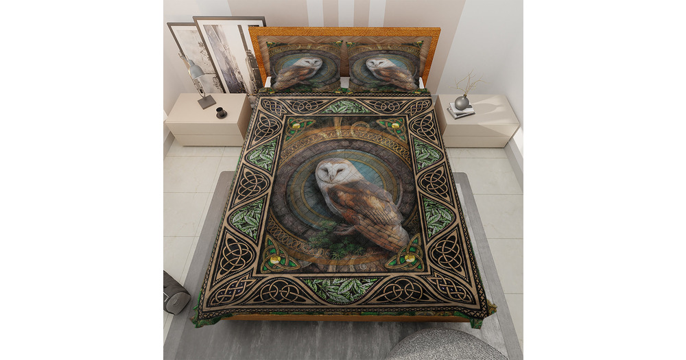 Vintage Owl Quilt Bedding Set: Gothic Forest Animals Blanket