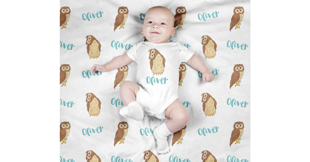 Personalized Baby Blanket, Custom Owl Swaddle Blanket Set, Newborn Photo Prop, Cute Baby Woodland An