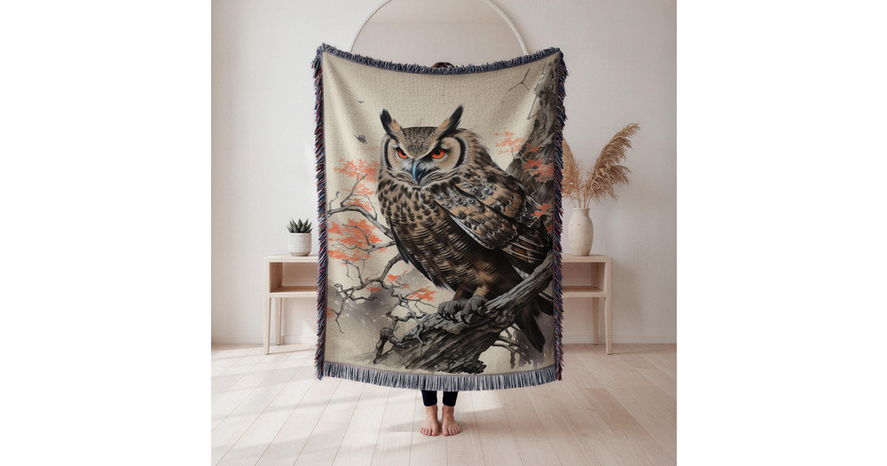 Owl woven blanket, bird lover decor, nature wall hanging, wildlife art throw, animal lover gift, woo