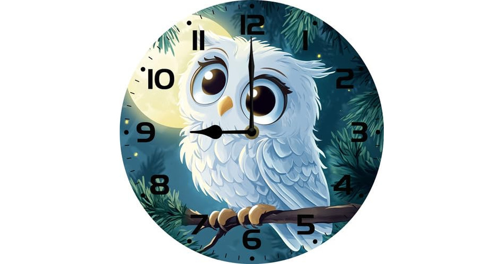 Soliyoahee Cute Owl Wall Clock Kawaii Owl Big Eyes Cartoon Animal 10inch Round Wooden Silent No Tick