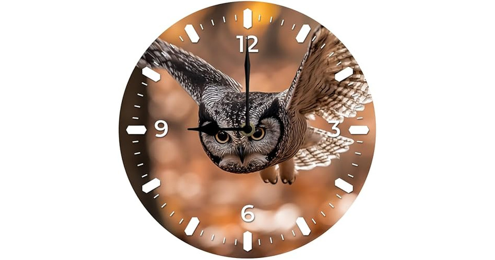 Imahoocool Farmhouse MDF Wall Clock 10 Inch Owl Wood for Kitchen, Living Room, Bedroom & Bathroo