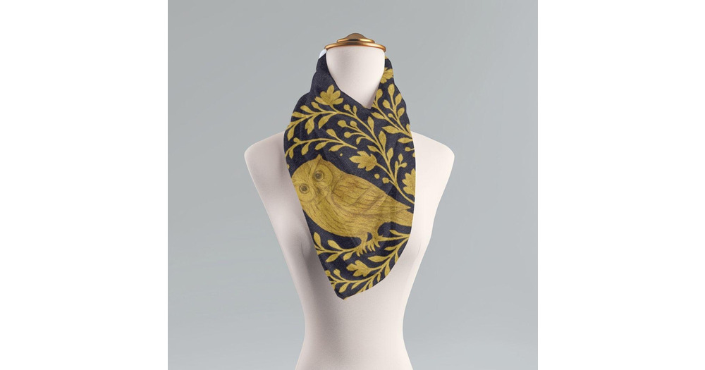 Golden Owl Scarf, Night Garden Celestial Forest Wrap