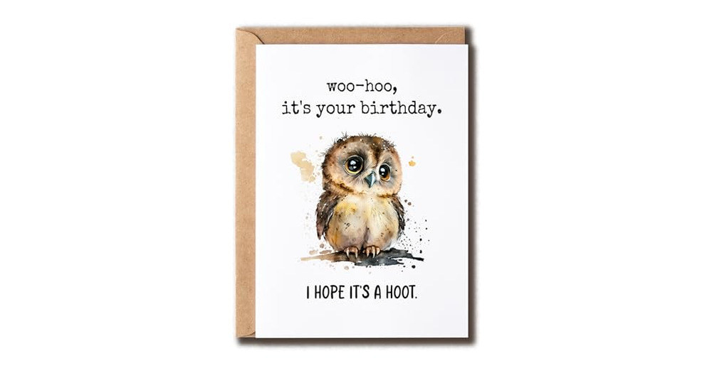 PTTShop Woo Hoo It's Your Birthday Card - Pretty Owl Greeting Card - Funny Cute Birthday Card -
