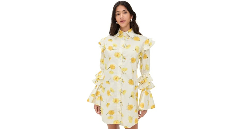 The Lulo Project Women's The Night Owl Dress, Mini Daisy, Floral, Yellow, XS