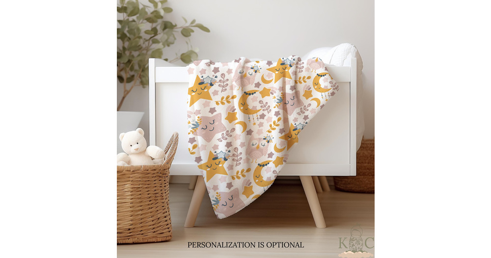 Personalized Boho Celestial Owl Swaddle Set – Moon & Star Baby Blanket, Custom Name Coming