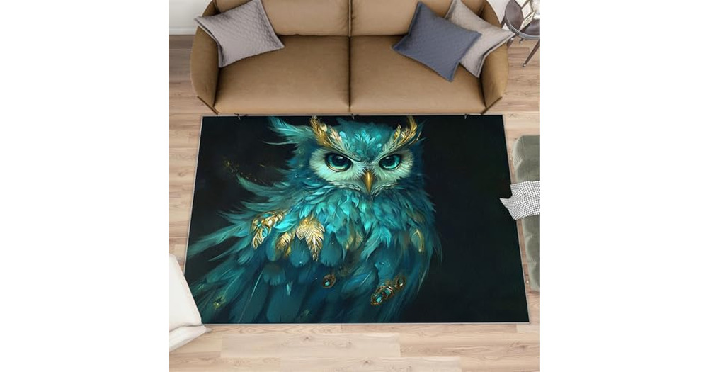 Owl Rugs for Bedroom - 4x6 Rug, Teal Turquoise Feather Area Rugs for Living Room, Nursery Carpet, An