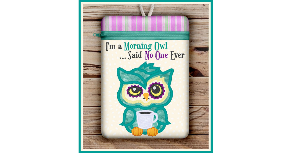 6x8.5" Night Owl Zippered Bag Design  *xxx vip pes jef hus exp dst vp3 Formats* ITH In The Hoop