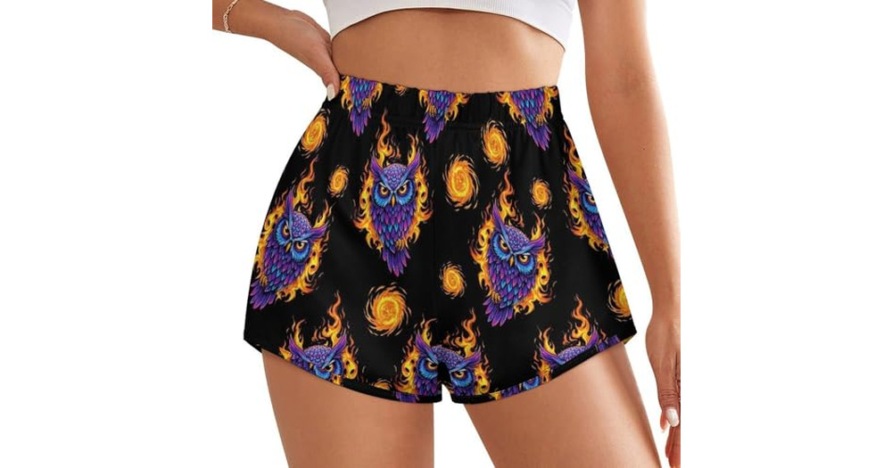 High Waist Sport Leggings for Women Abstract Fire Flame Owl Art, Soft Stretchy Yoga Running Shorts f