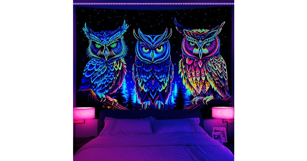 Ptrxobj Blacklight Owl Tapestry for Bedroom Aesthetic, Trippy Animal Forest Tree Wall Hanging Men De