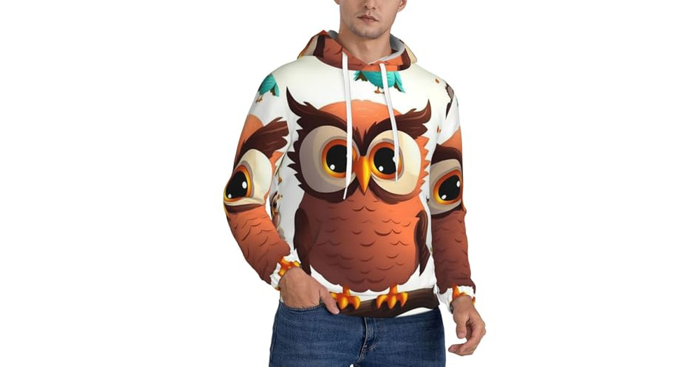 FHEBNDS Men's Fleece-Lined Hoodie Pullover cartoon owl Hoodies Casual Winter Hooded Sweatshirt
