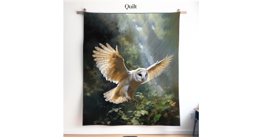 Flying Barn Owl Blanket Quilt or Wall Art, Barn Owl Art Decor, Gift for Owl Lovers, Owl Lovers Gift,