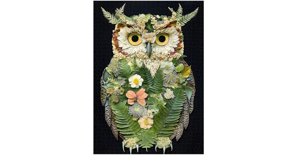 PICKFORU Foliage Owl 1000 Piece Puzzle for Adults, Nature Leaves Flowers Collage Art Jigsaw Puzzles,