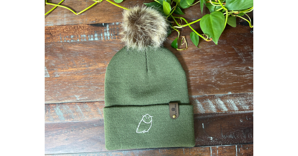 Hand Embroidered Winter Hat: Minimalist Owl Design, Custom Colors
