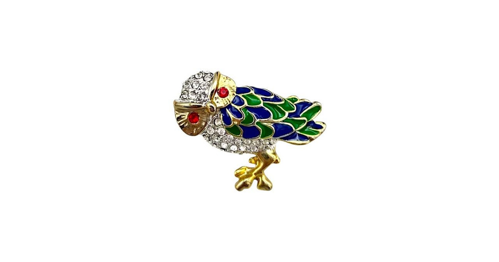 Rhinestone Owl Brooch: Enamel Figural Pin