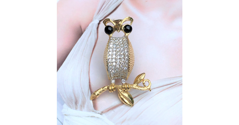Broche VINTAGE - Oiseau Chouette Hibou Cristal