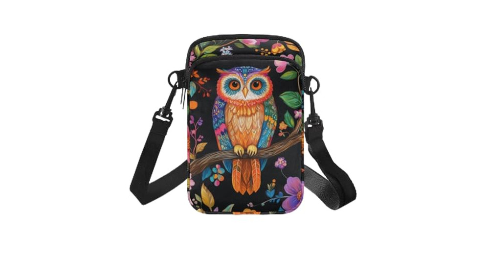 BYCHECAR Cute Small Crossbody Bag Cell Phone Purse for Women Cross Body Pouch Owl Floral Messenger B