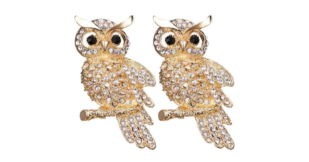 Rhinestone Owl Lapel Pin 2 Piece Set Brooch Pin Accessories Gifts