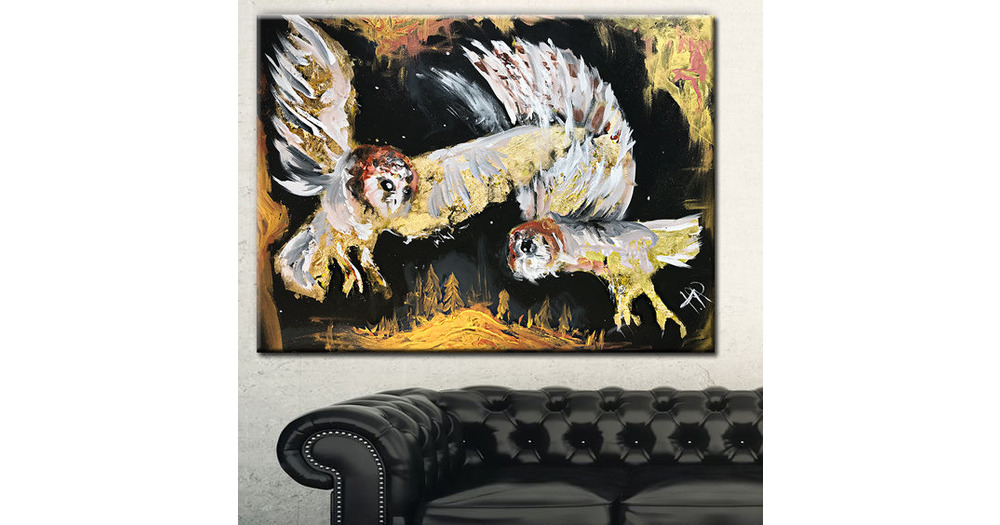 Gold Owls original painting, gold leaf, textured, owl art, home decor, art, gift, barn owl, stars,ni
